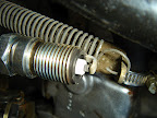 ポイント交換したあと、点火時期を調整したほうが良いそうなんだけど、 タイミングライト持ってないしなぁ・・・と思っていたんですが、 そうか、1番プラグに飛ぶ火をみればいいんじゃん、と、ジャッキアップしてプラグ外して、一番だけアースしてみてみました。